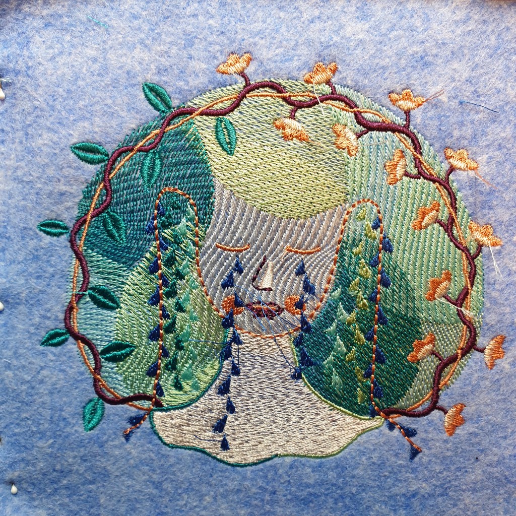 C’est par la couture, puis la broderie qu’elle est revenue à la création, d’abord en souhaitant coudre ses propres vêtements, puis en s’intéressant à la broderie. Petit à petit, elle y a trouvé une nouvelle joie artistique, ce qui l’a poussée à créer les Editions Machine Chouette, une maison d’édition de motifs de broderie machine, de design textile et papier.
